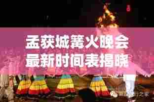 随着旅游业的蓬勃发展,越来越多的人开始关注各地的文化和娱乐活动,孟获城作为一个历史悠久的旅游胜地,其丰富多彩的文化活动和独特的民族风情吸引了众多游客前来观光游览,孟获城的篝火晚会更是备受瞩目,成为了游客们夜游孟获城的必看节目之一,本文将为大家介绍孟获城篝火晚会的最新时间表及相关信息。