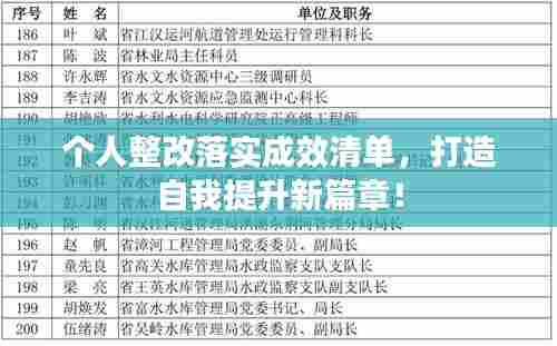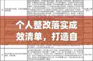个人整改是提升自我、实现自我价值的必要过程,面对生活中的不足和错误,我们需要正视问题,积极整改,确保个人成长和发展的方向正确,本文将围绕“个人整改落实成效清单”这一主题展开,阐述个人整改的重要性、具体步骤、实施过程以及成效评估等方面,以期为读者提供一个清晰的整改落实操作指南。