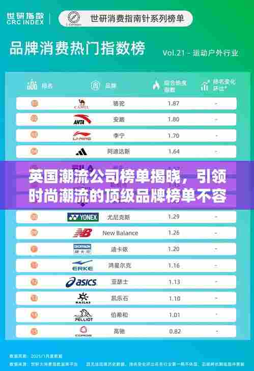 随着全球时尚产业的蓬勃发展,英国潮流界也涌现出众多独具创意和影响力的公司,本文将对英国潮流公司进行排名,带您领略这些引领时尚潮流的先锋企业。