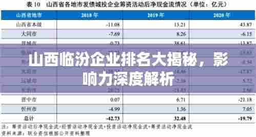 临汾市是山西省的一个重要城市,其经济发展势头强劲,各类企业如雨后春笋般涌现,本文将探讨山西临汾公司的排名及其影响力,揭示这些企业在当地乃至整个山西省的经济社会发展中所扮演的重要角色。