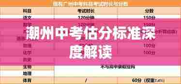 估分标准是潮州中考评价的核心内容之一,它关系到考生的成绩评定和高中录取的公平性,随着教育改革的深入,潮州中考估分标准的制定越来越科学、合理,旨在更准确地反映学生的真实水平。
