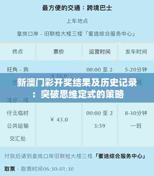新澳门彩开奖结果及历史记录:突破思维定式的策略
