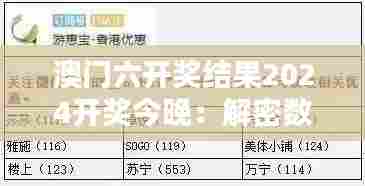 澳门六开奖结果2024开奖今晚:解密数字组合的奥秘