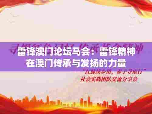 雷锋精神指的是中国军队士兵雷锋的社会主义价值观和模范行为,以奉献、助人为乐和集体主义为核心。在澳门,一个具有独特中西文化交融背景的特别行政区,雷锋精神不仅被广大人民所传颂,并且也在持之以恒地传承和发扬。本文以“雷锋澳门论坛马会”为研究对象,通过对相关的文献资料的收集与分析,旨在揭开雷锋精神如何在澳门被传承,并揭示其在社会发展中所扮演的角色。