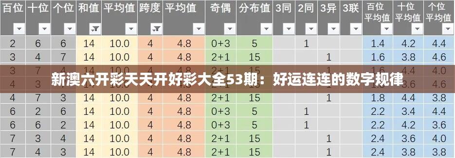 新澳六开彩天天开好彩大全53期:好运连连的数字规律