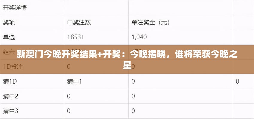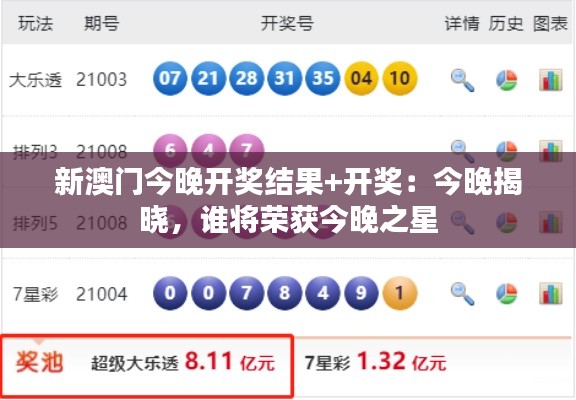 新澳门今晚开奖结果+开奖:今晚揭晓,谁将荣获今晚之星