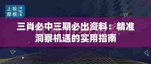 三肖必中三期必出资料:精准洞察机遇的实用指南概览