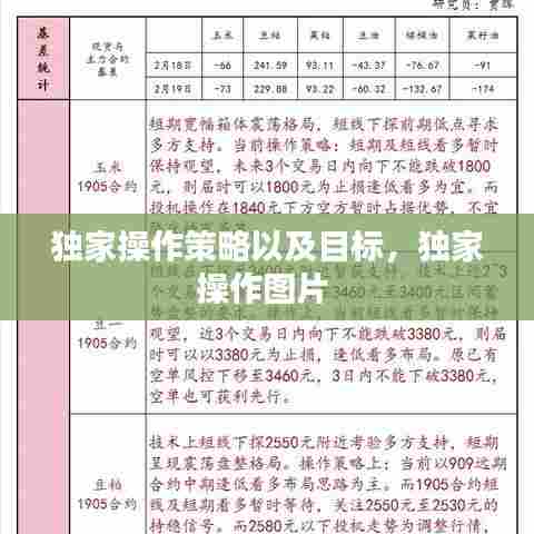 在当今竞争激烈的市场环境中,拥有一个独特的操作策略是成功的关键。独家操作策略不仅能够帮助企业在市场中脱颖而出,还能够提高效率和盈利能力。以下是一些关键的独家操作策略,以及它们的目标。