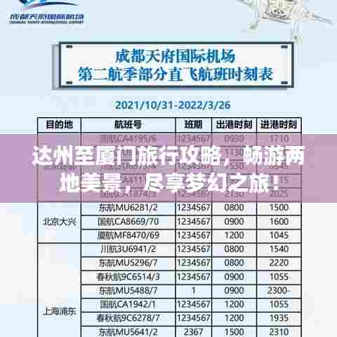 从达州到厦门,这场旅行将带给您无尽的惊喜和美好回忆,在厦门,您可以游览美丽的景点,品尝地道美食,感受文化的魅力,购物休闲,希望这份攻略能帮助您更好地规划旅行,享受旅行的乐趣。
