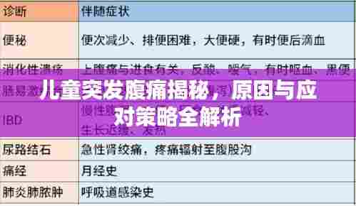 儿童腹痛是儿科常见的症状之一,突发性的腹痛往往令家长们担忧不已,为了帮助您更好地了解和应对这一问题,本文将详细阐述儿童突发腹痛的原因,并提供相应的建议。