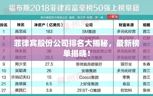 菲律宾作为一个充满活力和发展的国家,其经济领域有着众多优秀的股份公司,这些公司在不同的行业中发挥着重要的作用,为菲律宾的经济发展做出了巨大的贡献,以下是菲律宾的一些知名股份公司的排名。